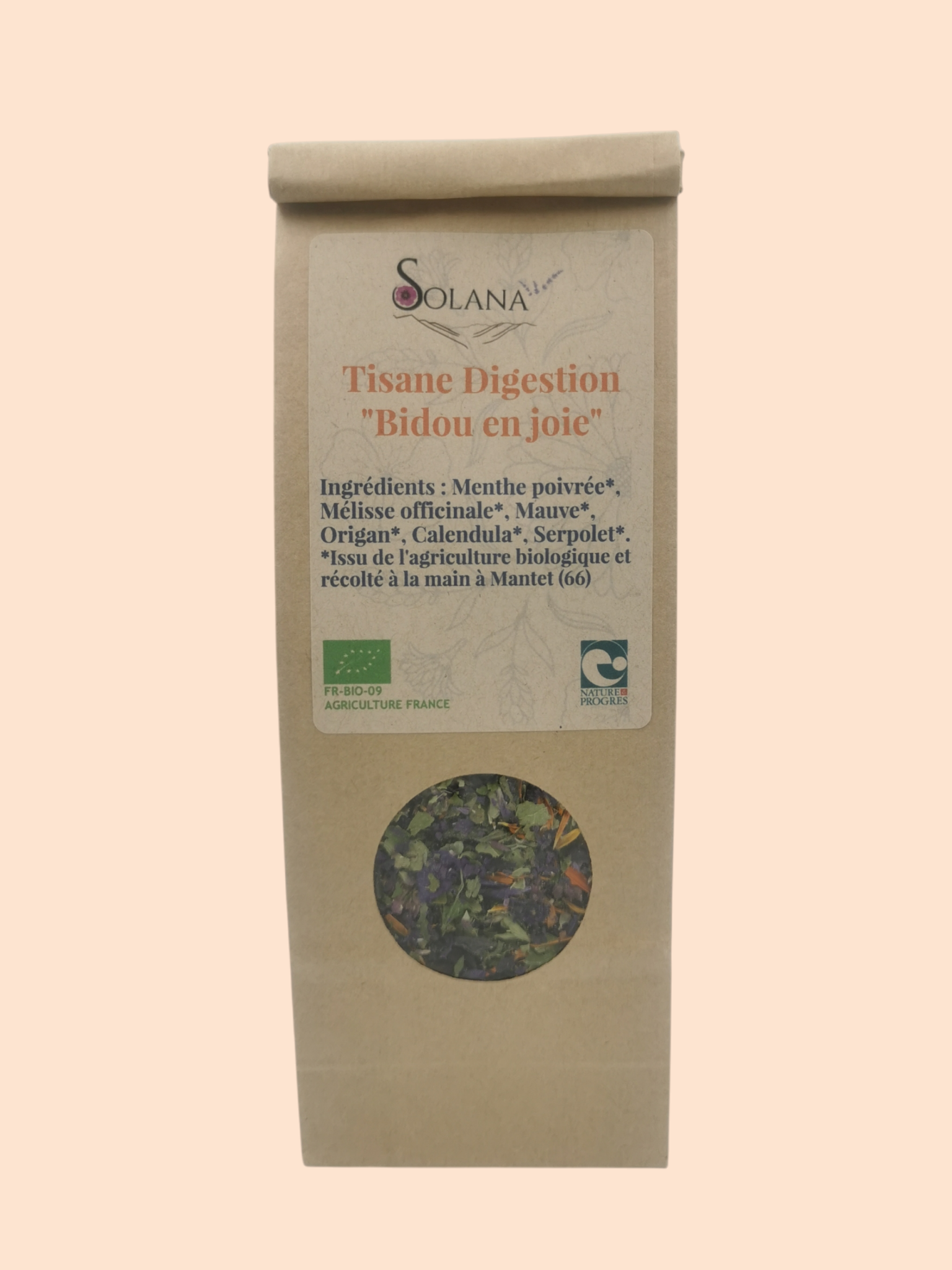 La tisane digestion « Bidou en joie » est à consommer de préférence après les repas pour accompagner la digestion.