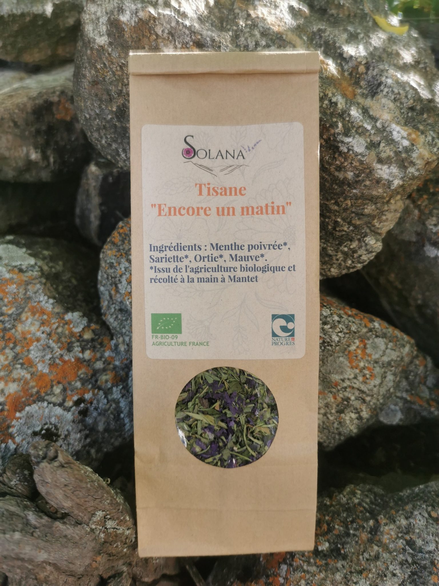 Les plantes poussent en altitude, dans un environnement préservé au cœur des Pyrénées, où l’air pur et la biodiversité sont au rendez-vous. La culture est biologique, respectueuse des sols et des cycles naturels. Récolte à la main, tri minutieux, puis séchage doux à basse température pour préserver arômes et qualités. Les mélanges sont réalisés en petites séries afin de garantir fraîcheur, authenticité et sobriété. Des valeurs fortes portées : respect de la terre, artisanat, proximité et transparence.